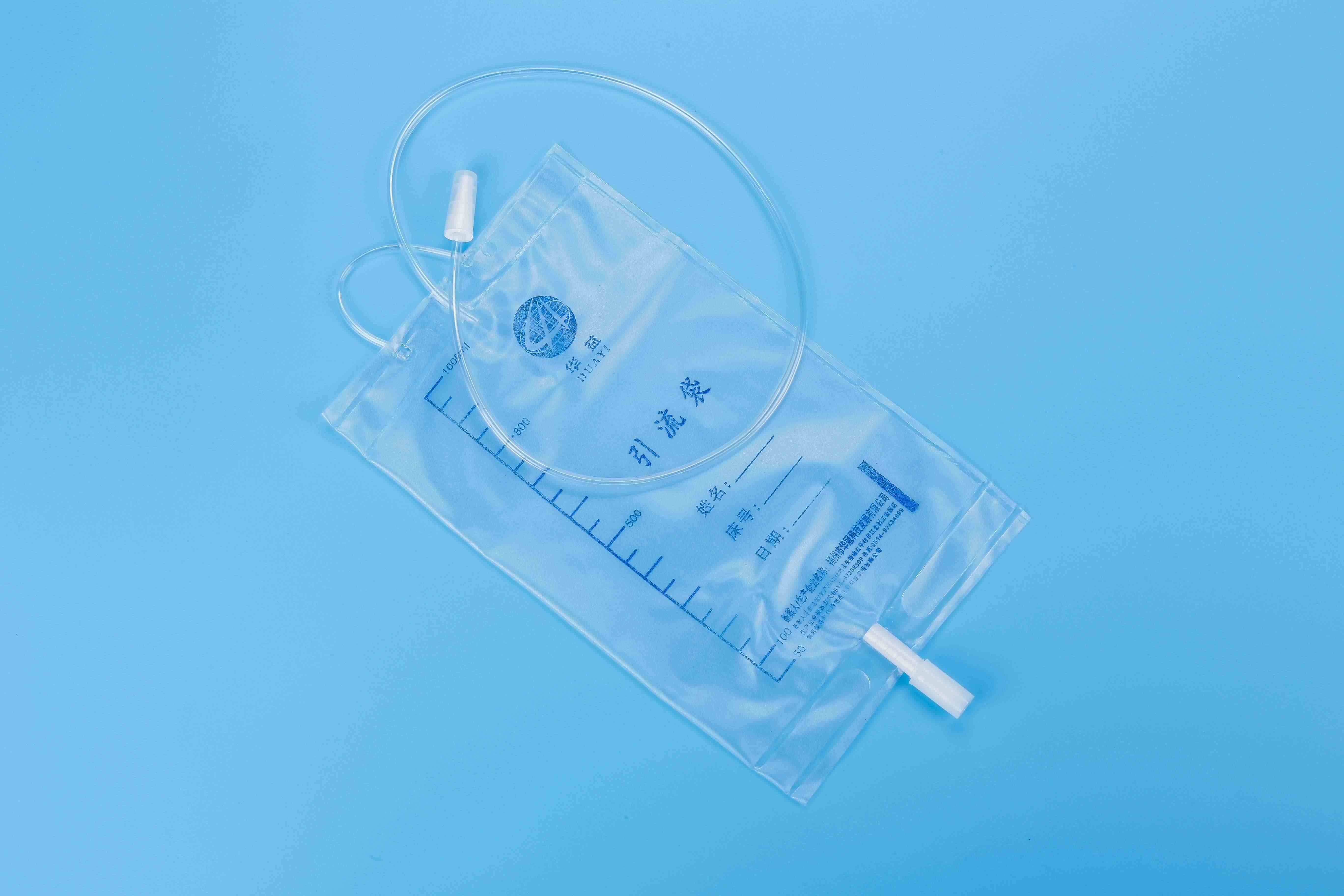 產品性能結構及組成;A型由袋體、連接管、吊耳、接頭、護帽、排液口控制開關、連接管控制開關、防逆流膜;B型由袋體、吊耳、連接管、接頭、護帽、男性尿套、連接管控制開關、防逆流膜組成。其中連接管控制開關、防逆流膜為選用配件。分為滅菌和非滅菌兩種。